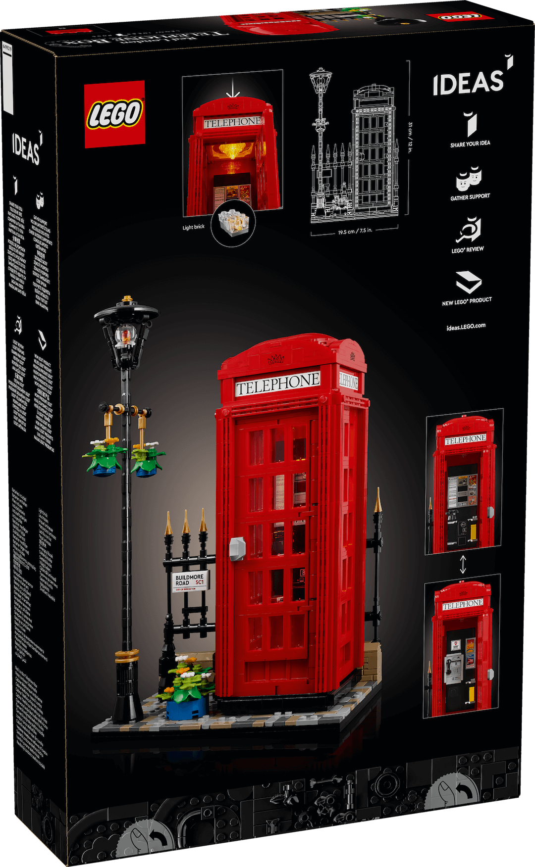 Stavebnice vzešla z hlasování na LEGO Ideas a patří k těm stavebnicím, které se od původního návrhu autora, v tomto případě Johna Crampa z Anglie, na první pohled příliš neliší. Troufám si dokonce říci, že okolí budky se designérům LEGO Group povedlo ještě trochu lépe než původnímu staviteli. Na druhou stranu mu však padla za oběť poštovní schránka, která dle mého názoru rovněž patří k typickému londýnskému mobiliáři (snad ji v Billundu neplánují vydat samostatně 😀).