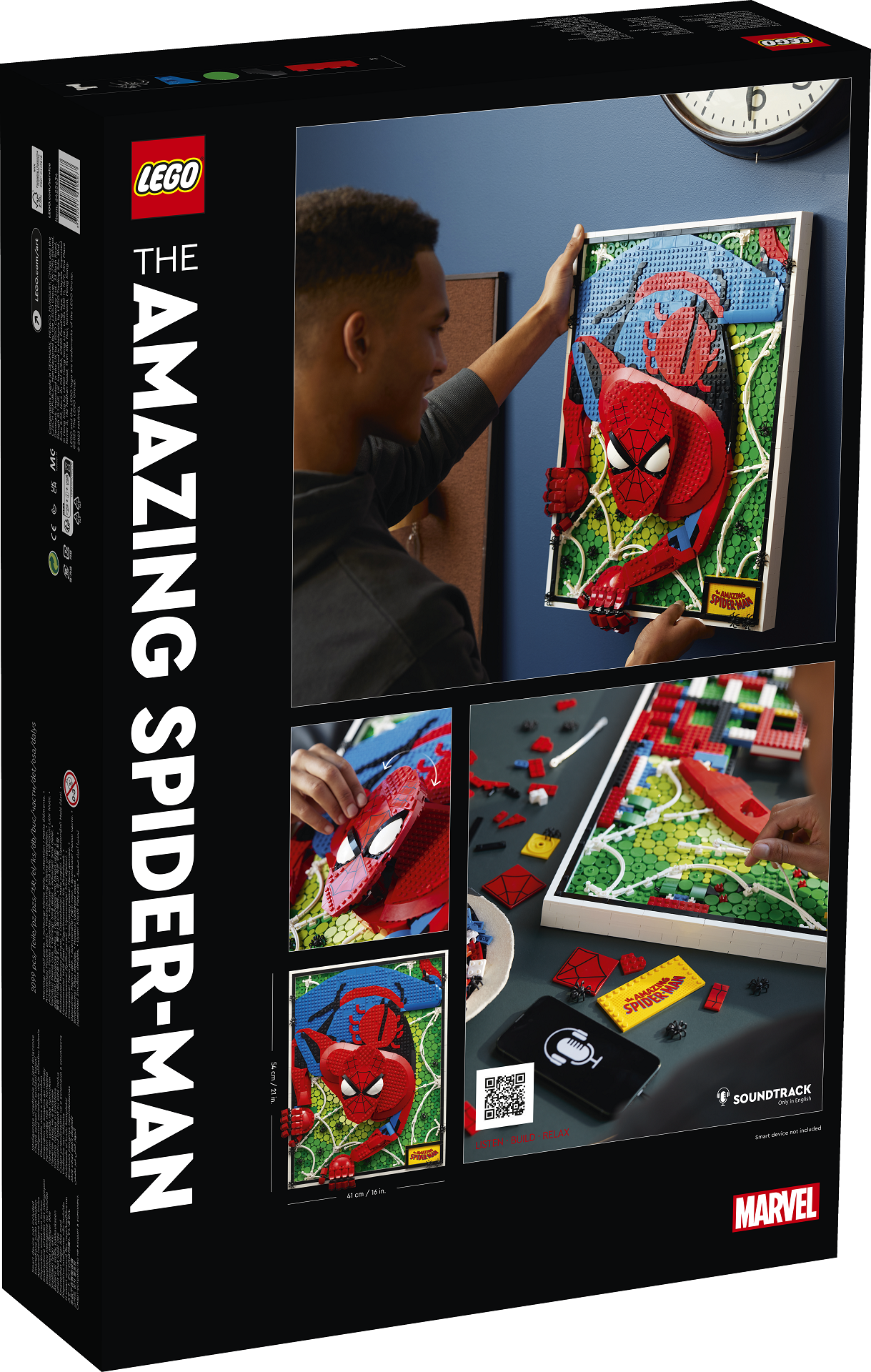 Finální model měří 54 cm na výšku a 41 cm na šířku. Složen je z 2 099 dílků. Dílo je určeno k zavěšení na zeď. I přesto, že jde primárně o statickou stavebnici určenou jen na výstavu, malé individuální změny u ní provést lze. Polohovat můžeme hlavu a prsty superhrdiny. Bonusem pro všechny stavitele je soundtrack přímo vytvořený ke stavění. Dostupný je po naskenování QR kódu. Obvykle se mi podaří na novinkách najít alespoň malý detail, který se mi tak úplně nelíbí, v tomto případě jsem ale hledal marně.