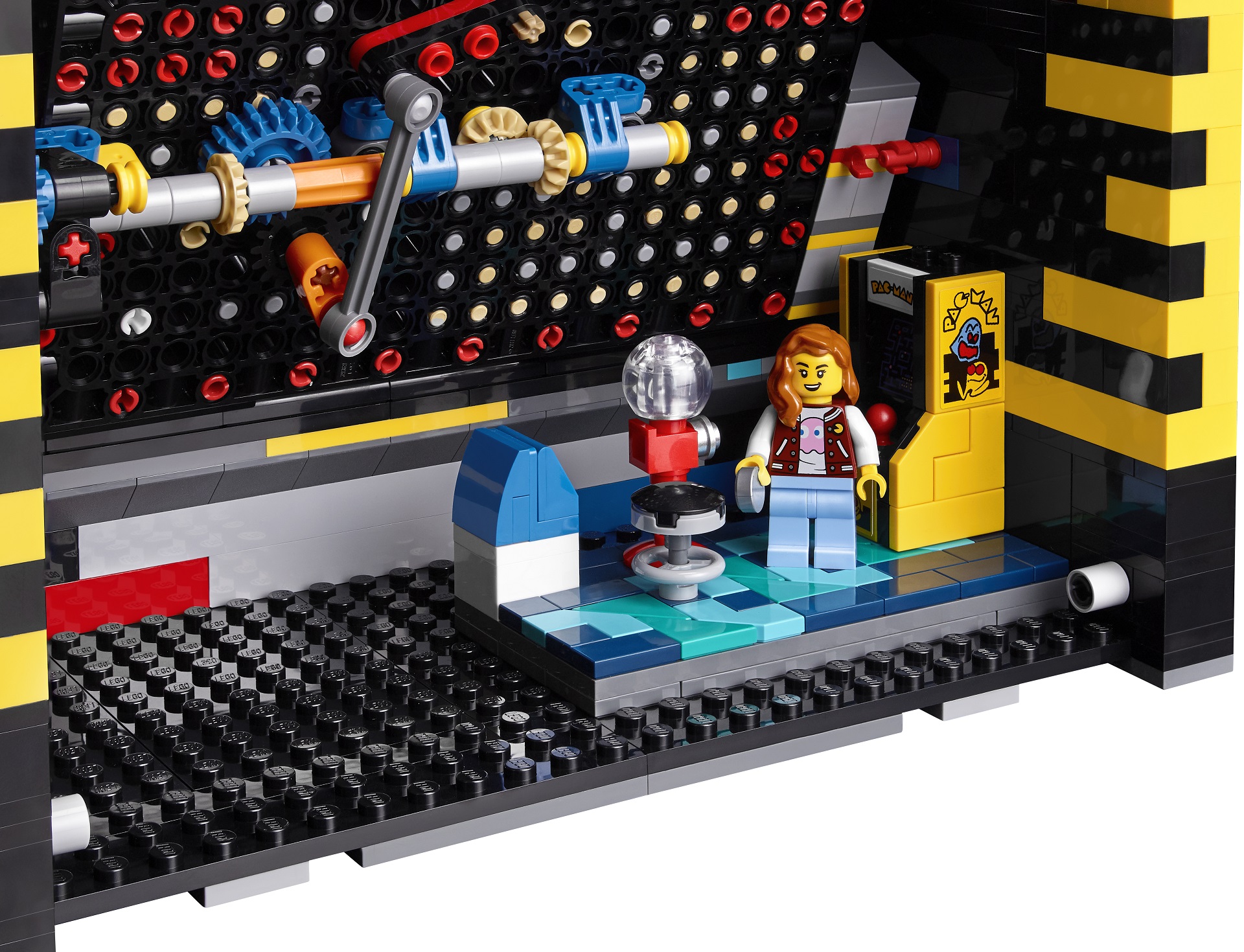 Stejně jako se téměř ve všech videohrách skrývají různé „easter eggy“, i LEGO si jeden připravilo. Uvnitř kabinetu se totiž skrývá malý model znázorňující ženskou postavu v herně, ve které nechybí ani zmenšenina automatu PAC-MAN. Výrobce se v případě novinky rozhodl pro kombinaci potisknutých kostek a samolepek. Oceňuji fakt, že tiles, které tvoří zdi herního plánu, mají potisk. Asi jen málokdo by si užil aplikaci samolepek na desítky drobných dílků.