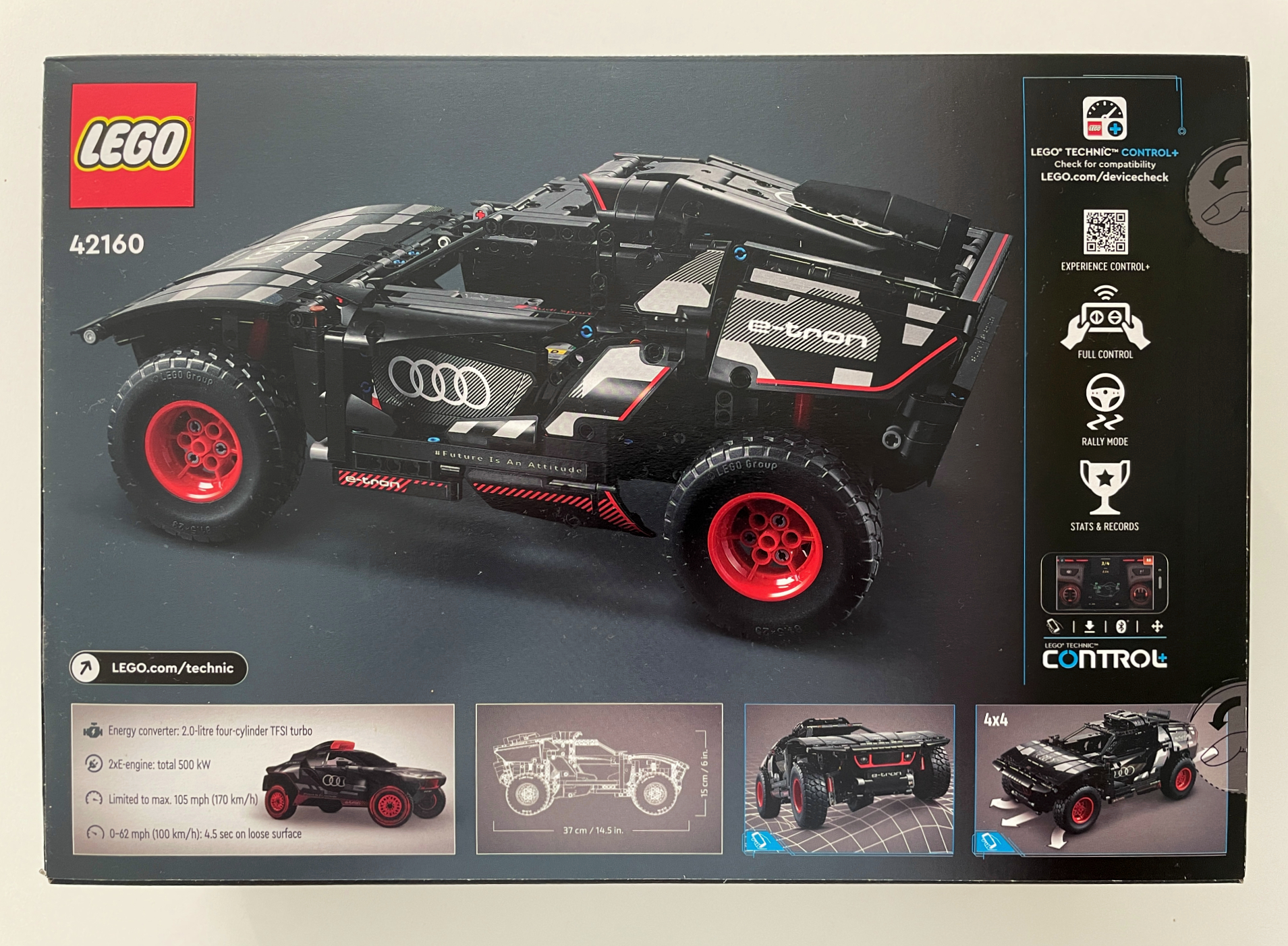 Z Audi RS Q e-tron mám smíšené pocity. Stavba byla zábavná, ale plná samolepek. Vůz je dálkově ovládaný, ale jede neuvěřitelně pomalu. Pozitivní je, že LEGO dokázalo vytvořit konstrukčně pevnou a motorizovanou stavebnici za více než rozumné peníze. Na druhou stranu se na několika místech trochu šetřilo. Interiér vůbec neexistuje. I když LEGO na produktové stránce zatvrzele tvrdí, že vyvinulo úplně nový volant odpovídající předloze z Audi, v balení ho nenajdete. Ploutev na střeše má jen jednu pohledovou stranu a v místech na bocích, kde mají být náhradní pneumatiky, najdete jen jejich náznak v podobě ozubeného čtvrtkruhu. Stavebnice si vysloužila ještě jedno prvenství. Jedná se o vůbec první automobil značky Audi v LEGO Technic podobě.