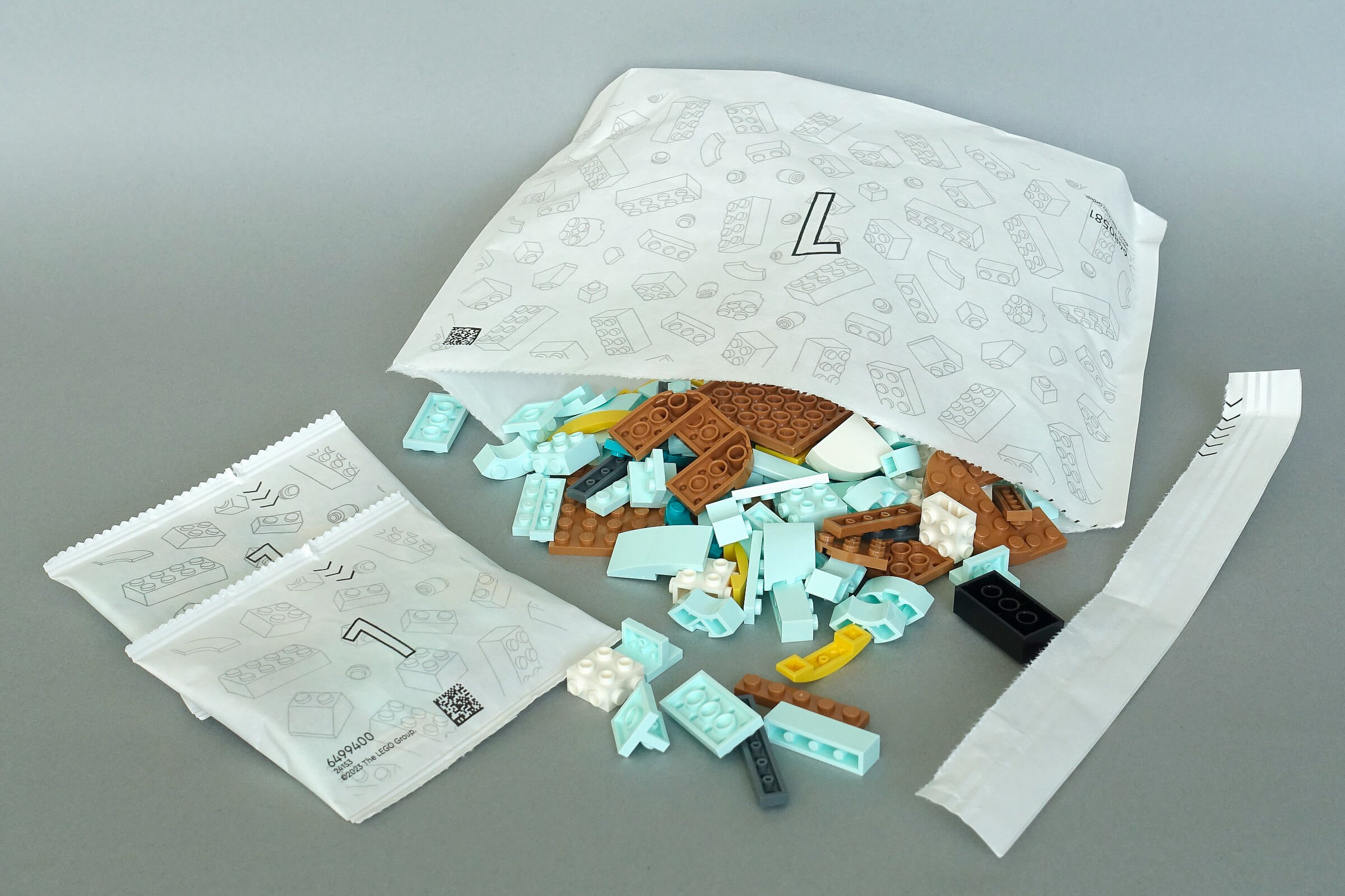 Pravda, přechod na papír ještě není stoprocentní, protože uvnitř sáčku s číslem 2 byly ještě dva malé plastové pytlíky s menšími díly. Zajímavé je i provedení papírových sáčků – papír je zevnitř opatřený plastovou nebo voskovou vrstvou pro jeho ztužení. Navíc pro snadnější otevření jsou velké sáčky perforované a ty malé mají jakési „nastřihnutí“.