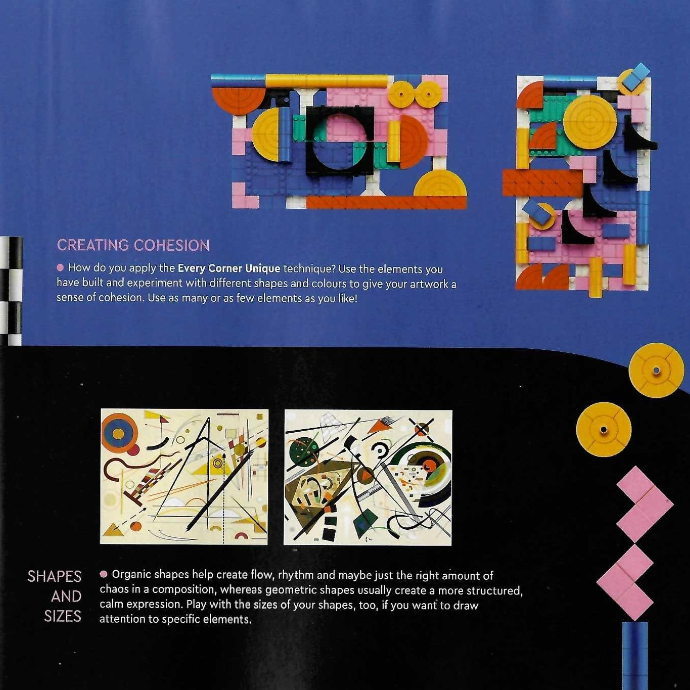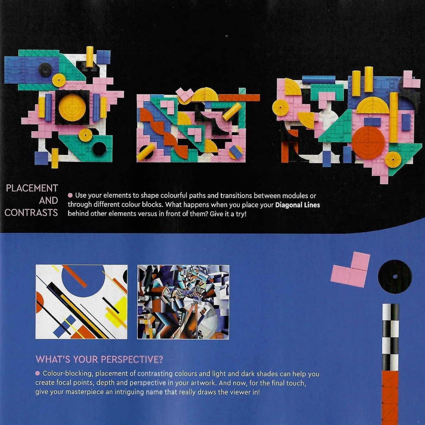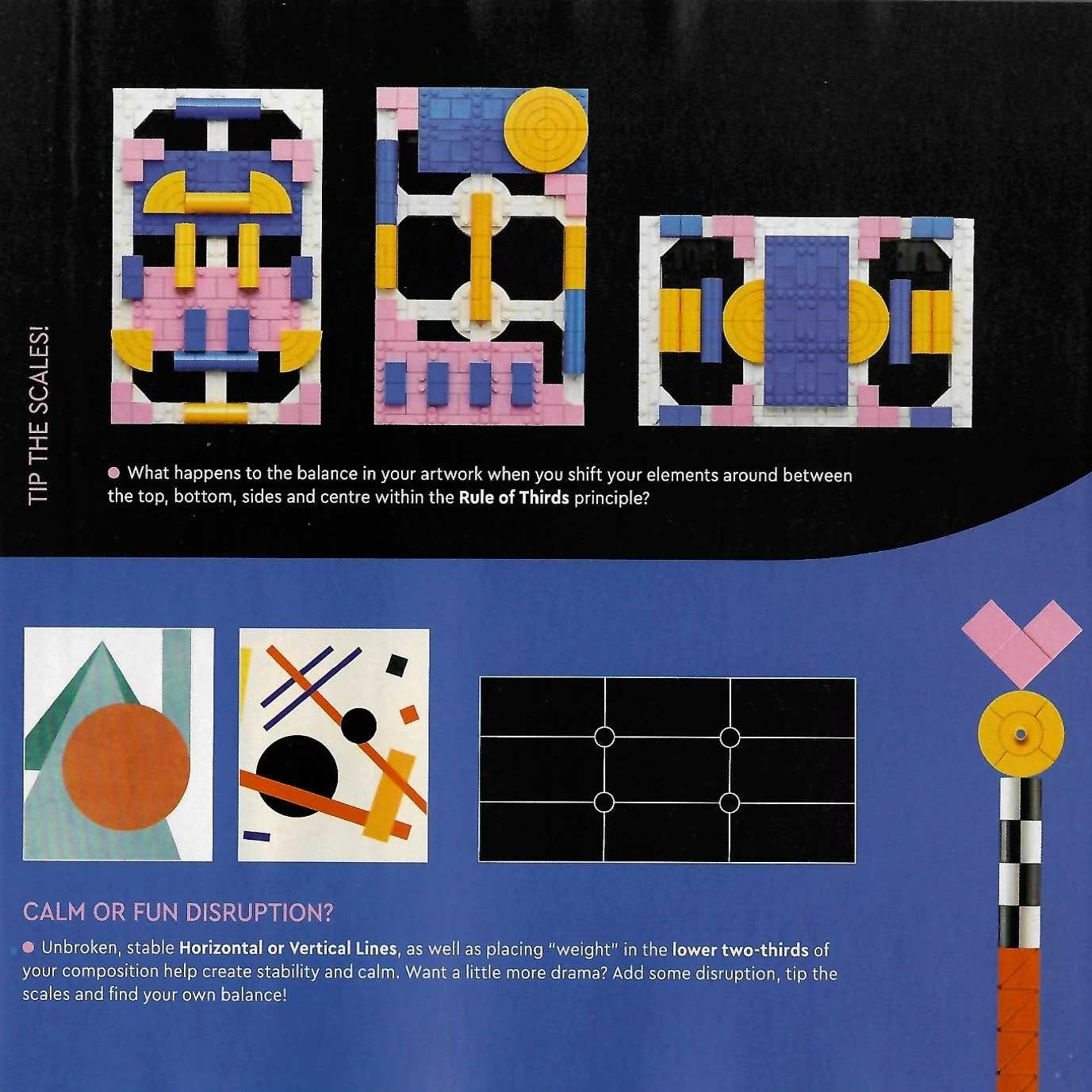 Monotónnost stavebního procesu narušují dvoustránky s výkladem principů umění. Autoři zde na názorných příkladech ukazují vyvážení, rytmus a pohyb. LEGO tak nabádá stavitele k tvorbě vlastního obrazu.
