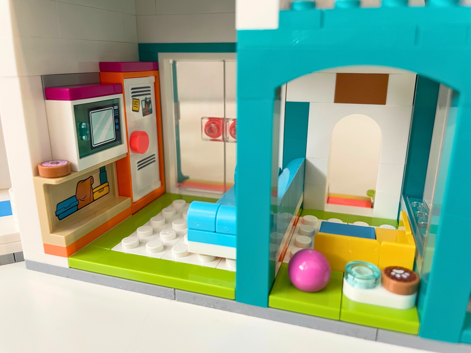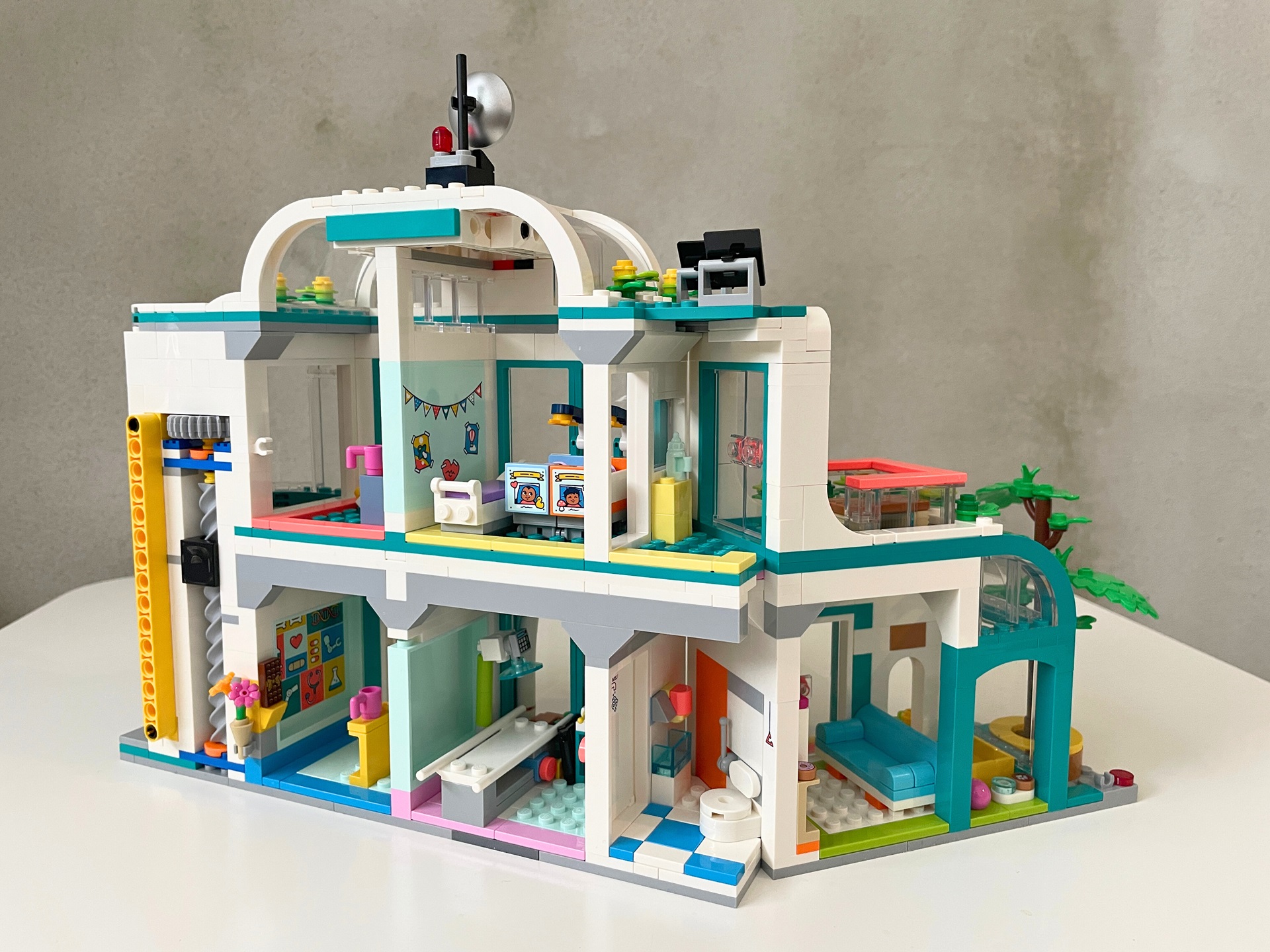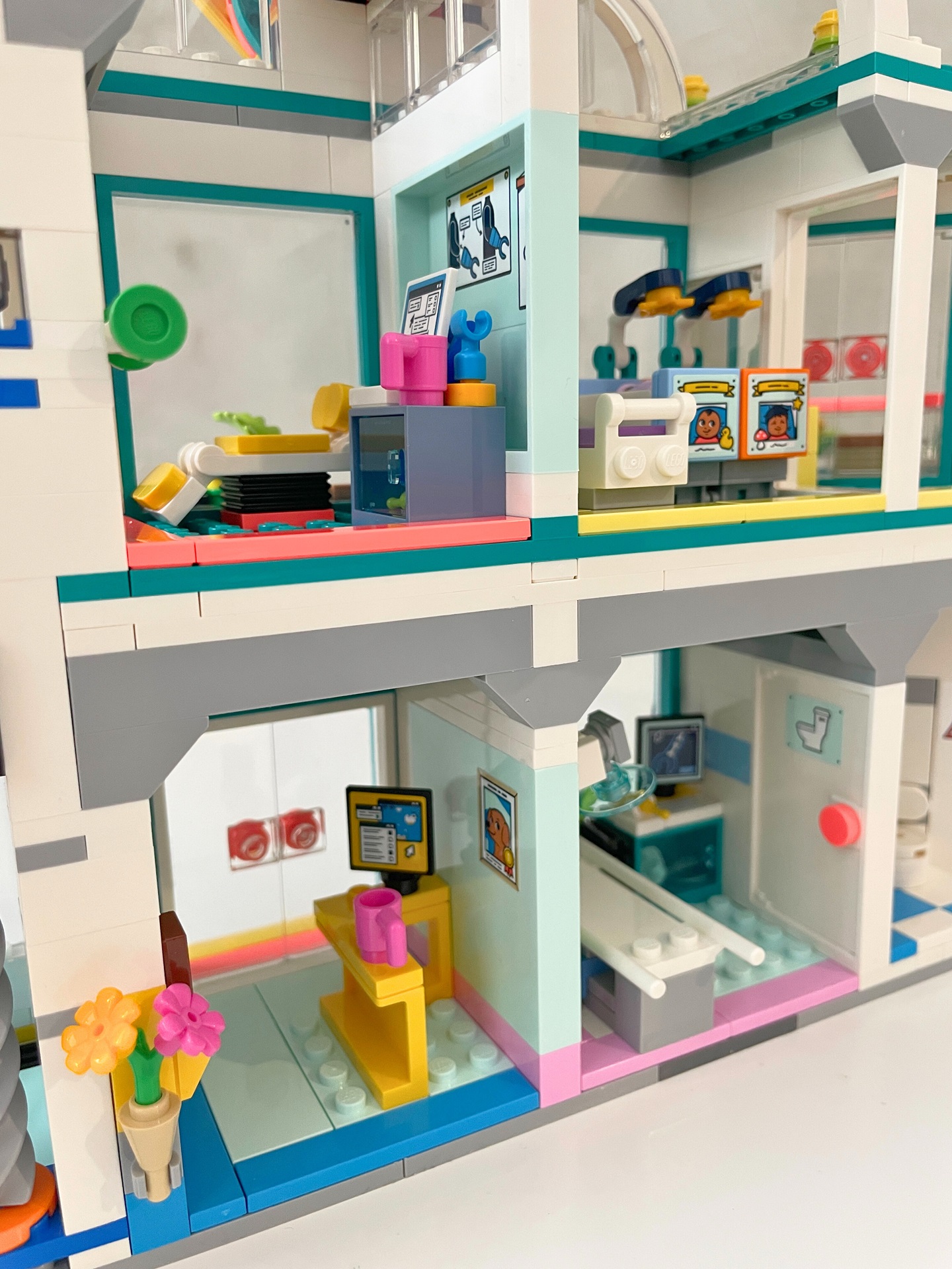 Téma nemocnice je mi osobně blízké a v LEGO světě ho vidím rovněž rád, ale ze setu 42621 Nemocnice v městečku Heartlake mám trochu rozporuplné pocity. Některé jeho části jsou naprosto skvělé (protetika, výtah) a jiné bych klidně zcela vynechal, nebo minimálně upravil (vrtulník, pokoj pro matku a děti, květiny). Kdo nemá rád samolepky, bude při stavbě trpět. Jak už je v řadě Friends zvykem, právě díky jejich velkému počtu je interiér detailnější.