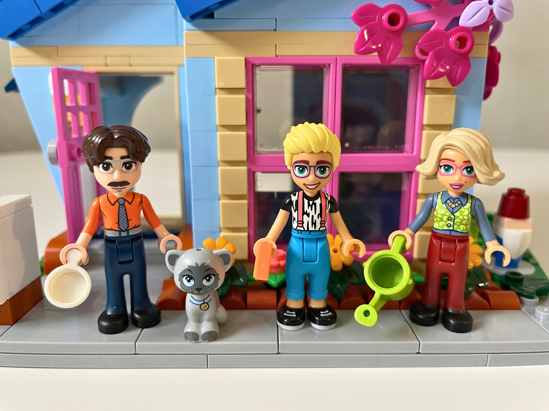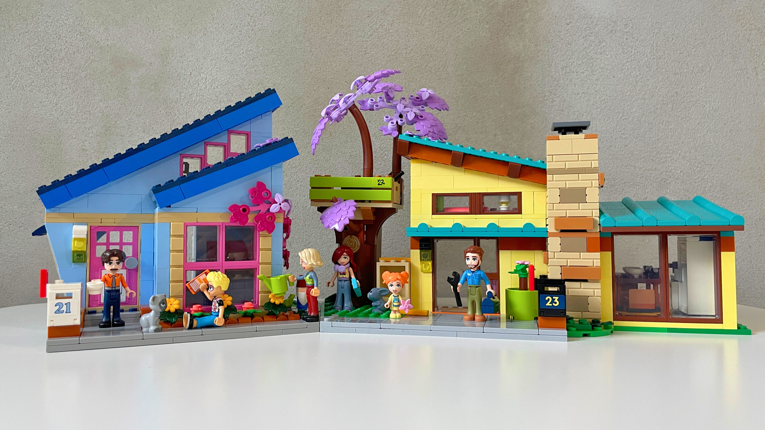 Od setu 42620 Rodinné domy Ollyho a Paisley jsem měl velké očekávání, které se naplnilo jen z části. Jako obdivovatel architektury jsem spokojen. Z venku jsou domy velmi pěkné, ale prostě si nedokážu představit, jak si ve stísněném prostoru hrát. Kdybych si mohl vybrat, raději bych měl jeden prostornější dům než dva menší. Taky je škoda, že před domy nelze figurky prakticky nikam umístit, chybí k tomu study. Všechny grafické prvky stavebnice tvoří samolepky. Je jich opravdu dost. Osobně s nimi nemám úplně problém, ale doslova trpím, když je třeba lepit na kulaté plochy. Ten pocit, když se netrefím přesně na střed, mě straší ve snech.