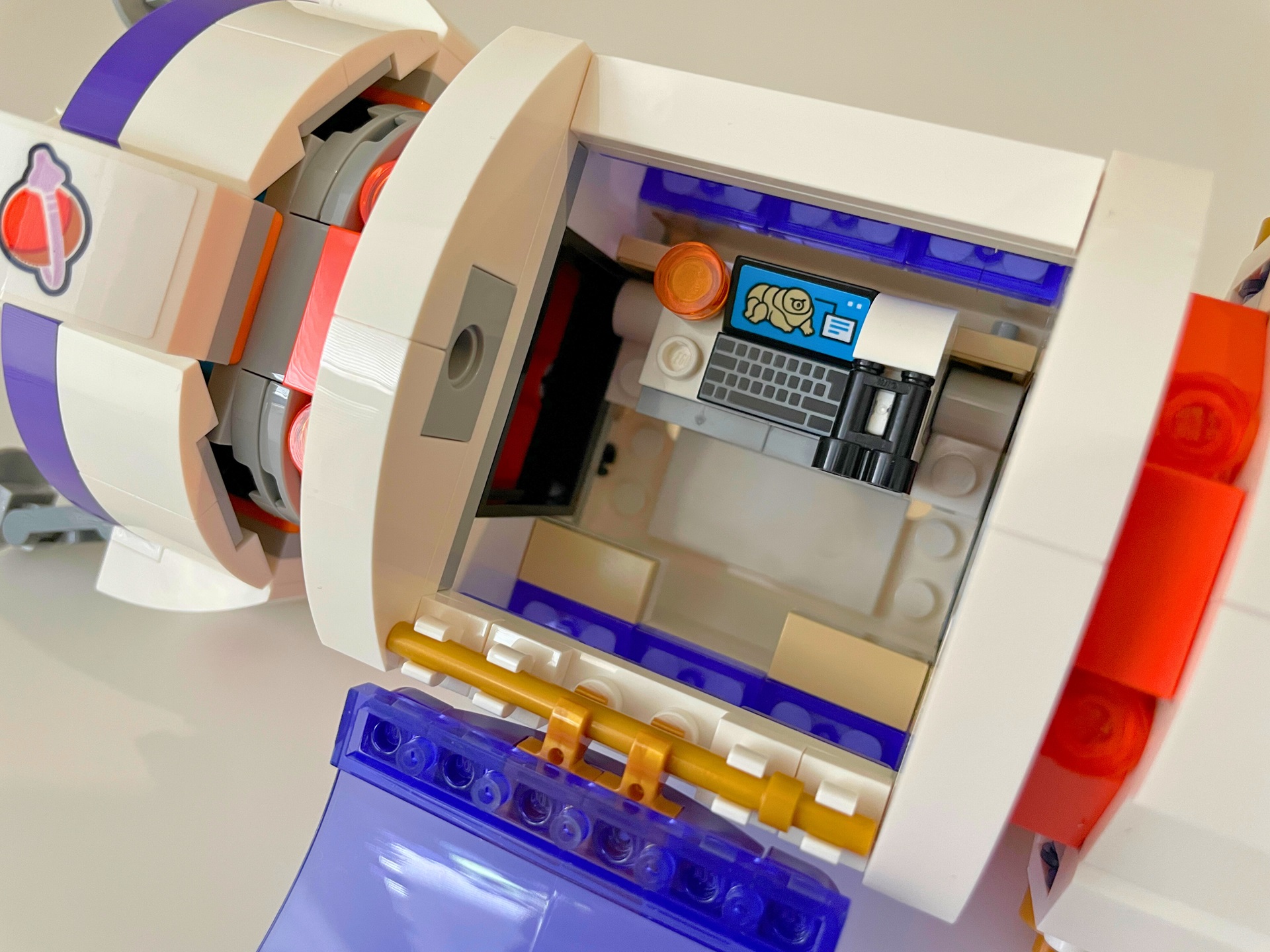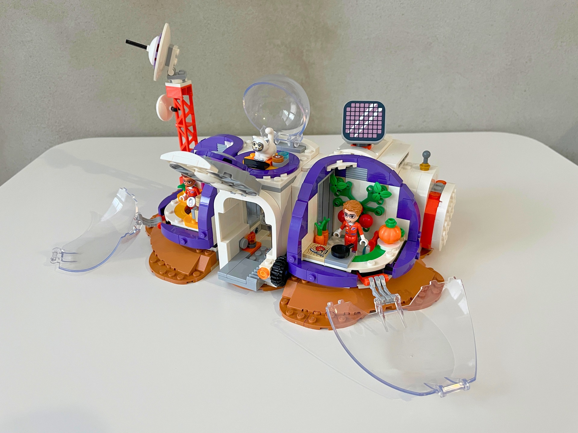 Mně se kombinace fialové s oranžovou moc líbí, jen mi moc nesedí k barvě Marsu. Jedna výrazná barva asi bude muset pryč. Nejspíš to dopadne tak, že u nás doma budou mít Friends základnu na tmavě šedém povrchu Měsíce.