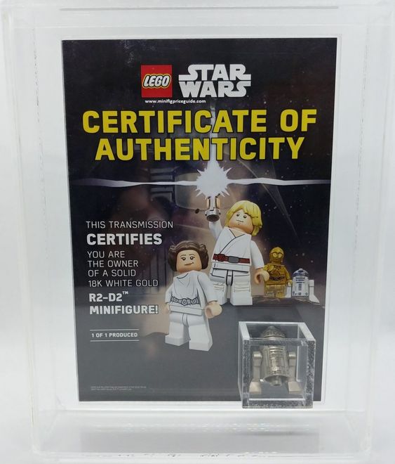 Na teoretickém druhém místě se umístil R2-D2 z bílého zlata. Tento astromech vznikl opět pouze v jediném provedení a doprovází ho certifikát pravosti. Kromě něho majitel získá i černou VIP kartu opravňující ke speciálním akcím v LEGO obchodě. Odhadovaná hodnota se blíží 940 000 Kč.