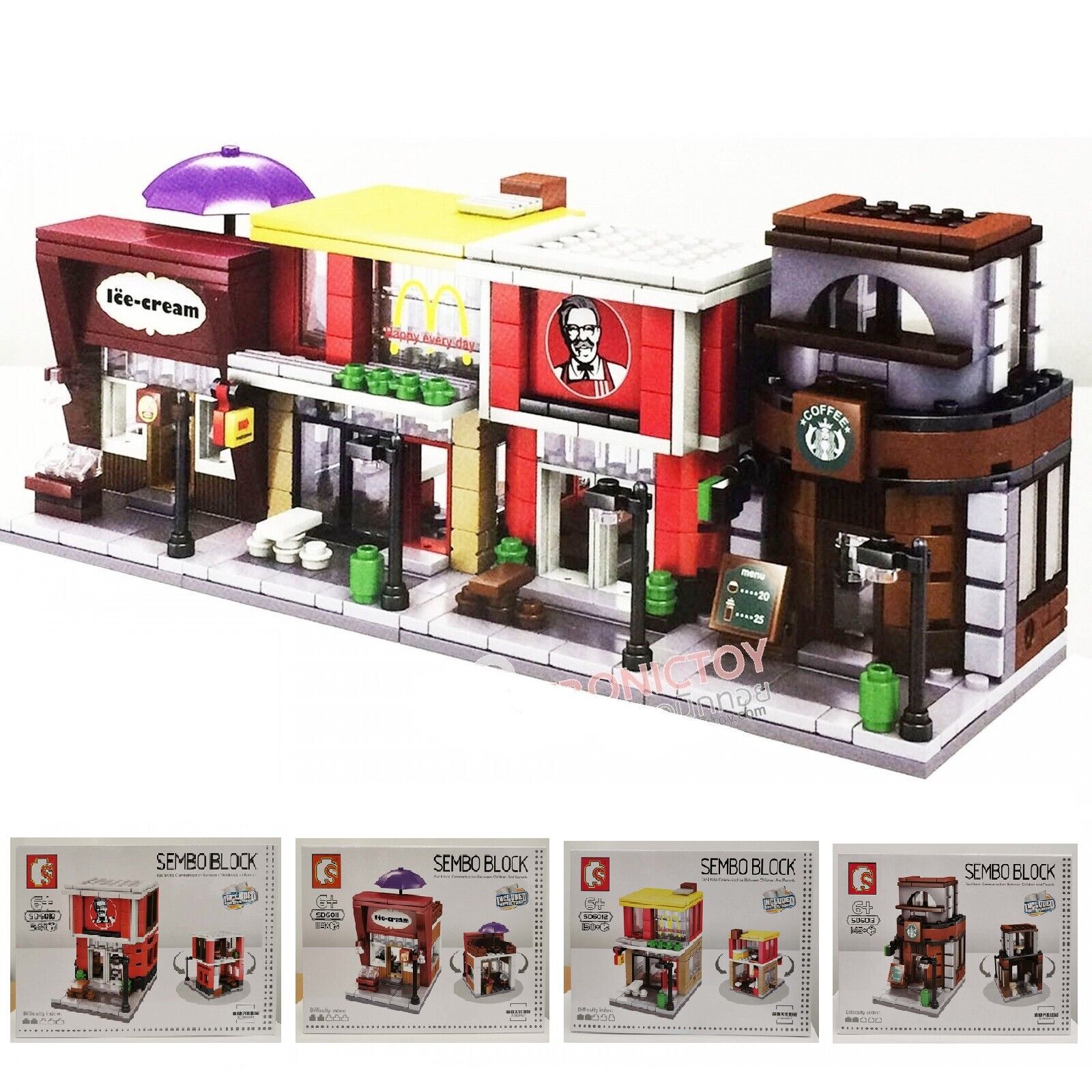 Bohužel se mi nepodařilo ověřit, zda má Sembo opravdu licenci na ztvárnění Spongeboba v kalhotách a Digimon, ale vzhledem k prezentaci log těchto značek v obchodě, budu předpokládat, že tomu tak je. Tak jistý už si nejsem v případě restaurací KFC, McDonald’s, Apple storu a mnoha dalších, které Sembo taky nabízí.