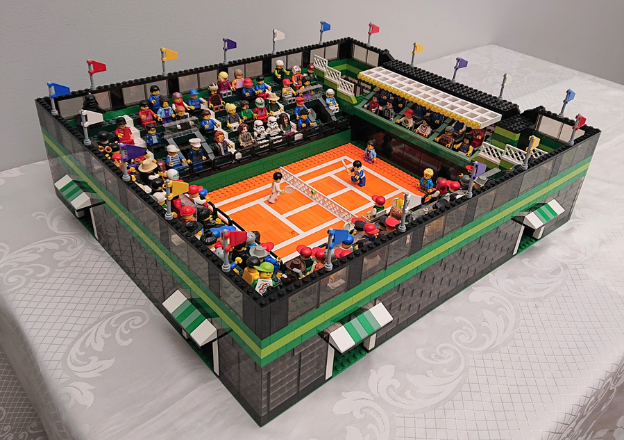 Tenisové hráče jste si mohli zakoupit v rámci 3. a 7. série LEGO Minifigures v letech 2011 – 2012. Jediné tenisové hriště pak najdete ve stavebnici 41338 Stephanie ve sportovní aréně z roku 2018.
