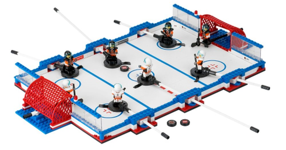 Velice podivně se řada Sports podívala na ledovou plochu. V roce 2003 totiž LEGO vsadilo na hráče postavené z kostek ve stylu Technic a Bionicle. Pamatuji si, že mě tyto figurky v dětství vyloženě děsily a vůbec jsem nerozuměl tomu, jaký je jejich účel. O rok později už ale výrobce dostal rozum a pokusil se napodobit stolní hokej setem 3578 NHL Championship. Hokejisté umístění na kluzných discích se ovládali pomocí dlouhých tyček.