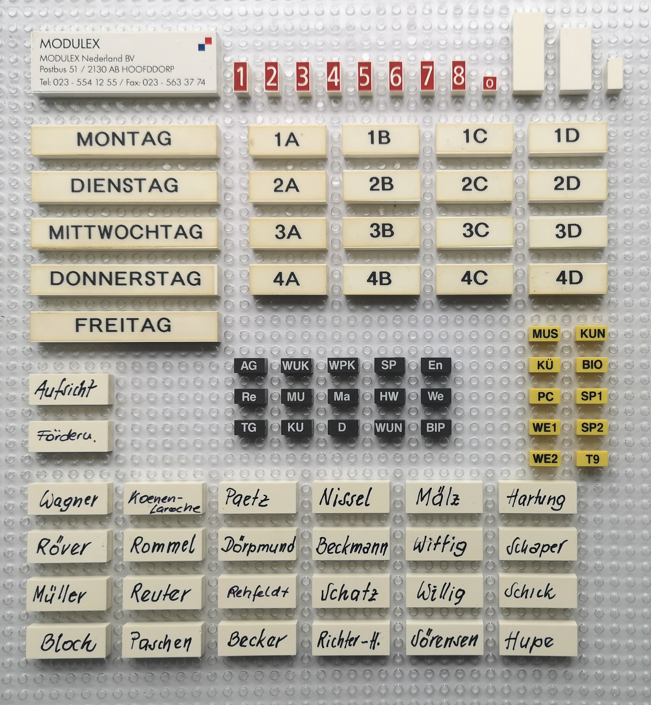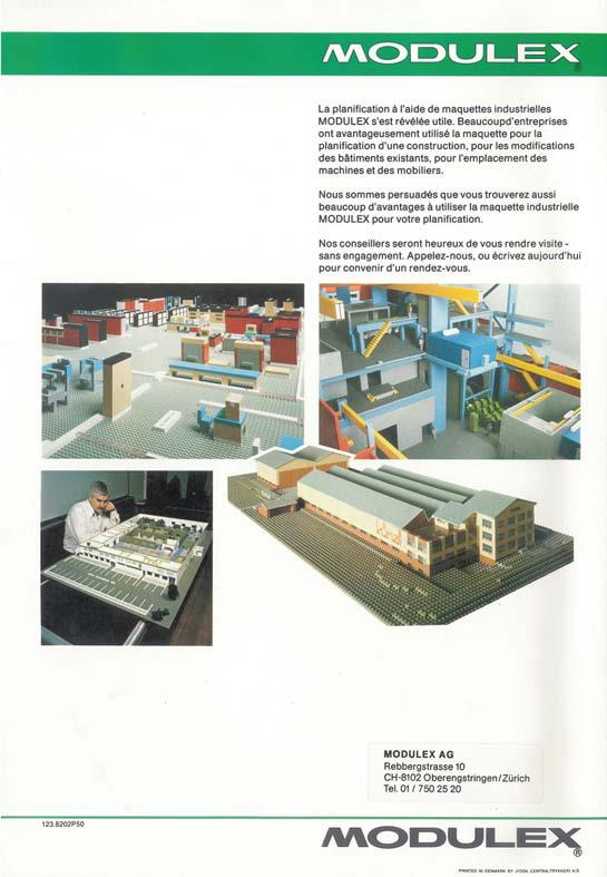 A jaký byl osud plánovacího systému založeném na kostkách LEGO? V 80. letech se již společnost Modulex soustředila čistě na výrobu cedulí, což také znamenalo konec úspěšného Modulex Planning Systému. Původní kostky v modulexovém měřítku však společnost produkovala až do roku 2004 ve formě stavebnic Plancopy, jejichž využití bylo prakticky totožné.